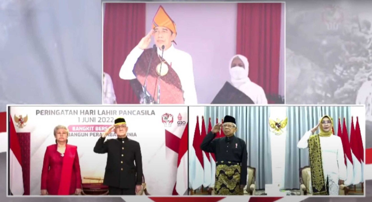 Dalam pidato presiden mengatakan “Untuk Bersama sama membumikan dan mengaktualisasikan nilai – nilai aktualisasi dalam berkehidupan bermasyarakat m berbangsa dan bernegara ,Pancasila bukan hanya telah mempersatukan kita semua , Pancasila juga telah menjadi bintang penuntun ketika bangsa Indonesia menghadapi tantangan dan ujian- ujian dan ini sudah di buktikan berkali kali dalam perjalanan sejarah bangsa bahwa bangsa kita bisa berdiri kokoh menjadi negara yg kuat karena kita semua sepakat untuk berlandaskan kepada Pancasila"