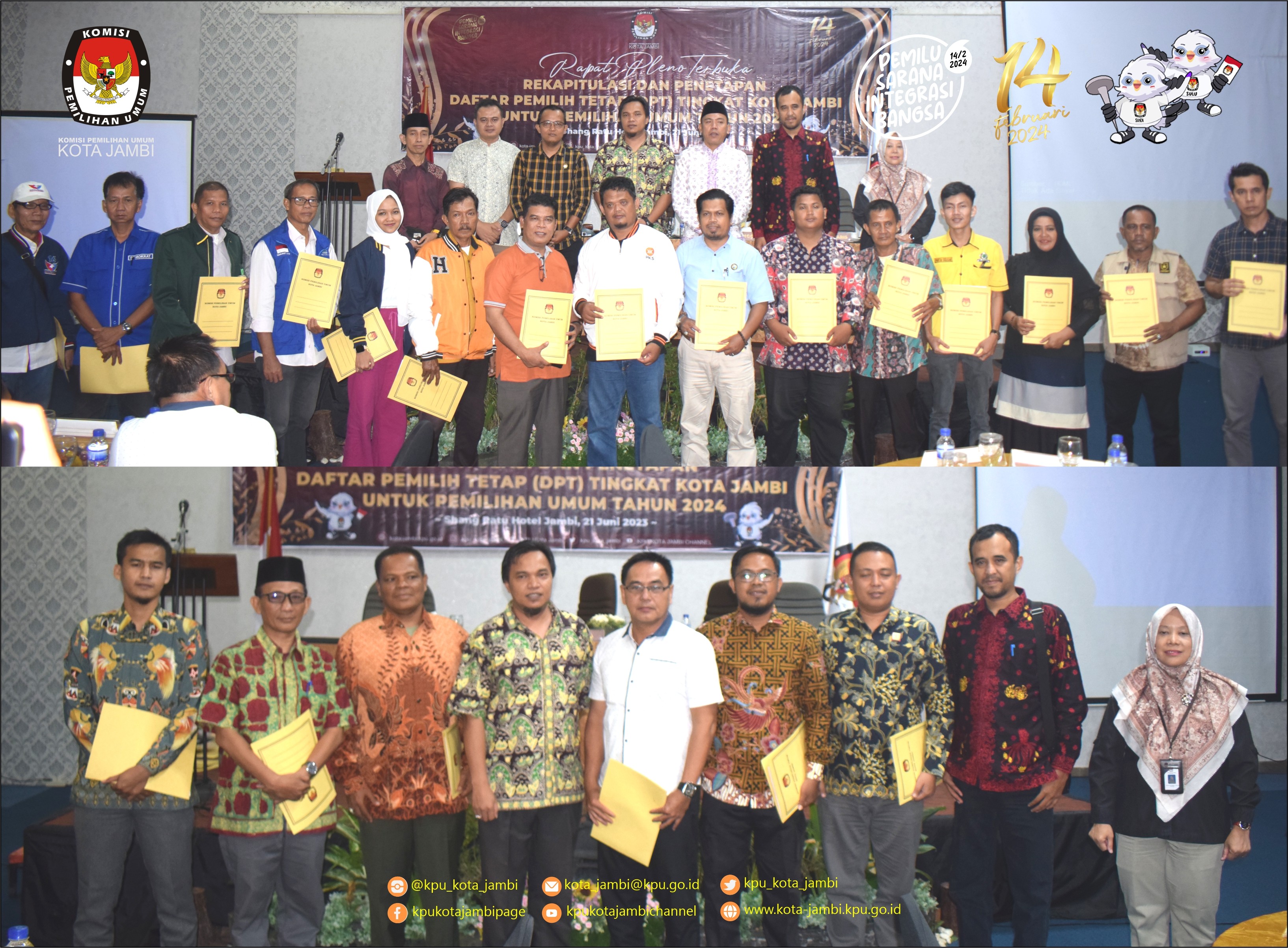 Rapat Pleno Terbuka Rekapitulasi dan Penetapan Daftar Pemilih Tetap (DPT) Tingkat Kota Jambi untuk Pemilihan Umum Tahun 2024