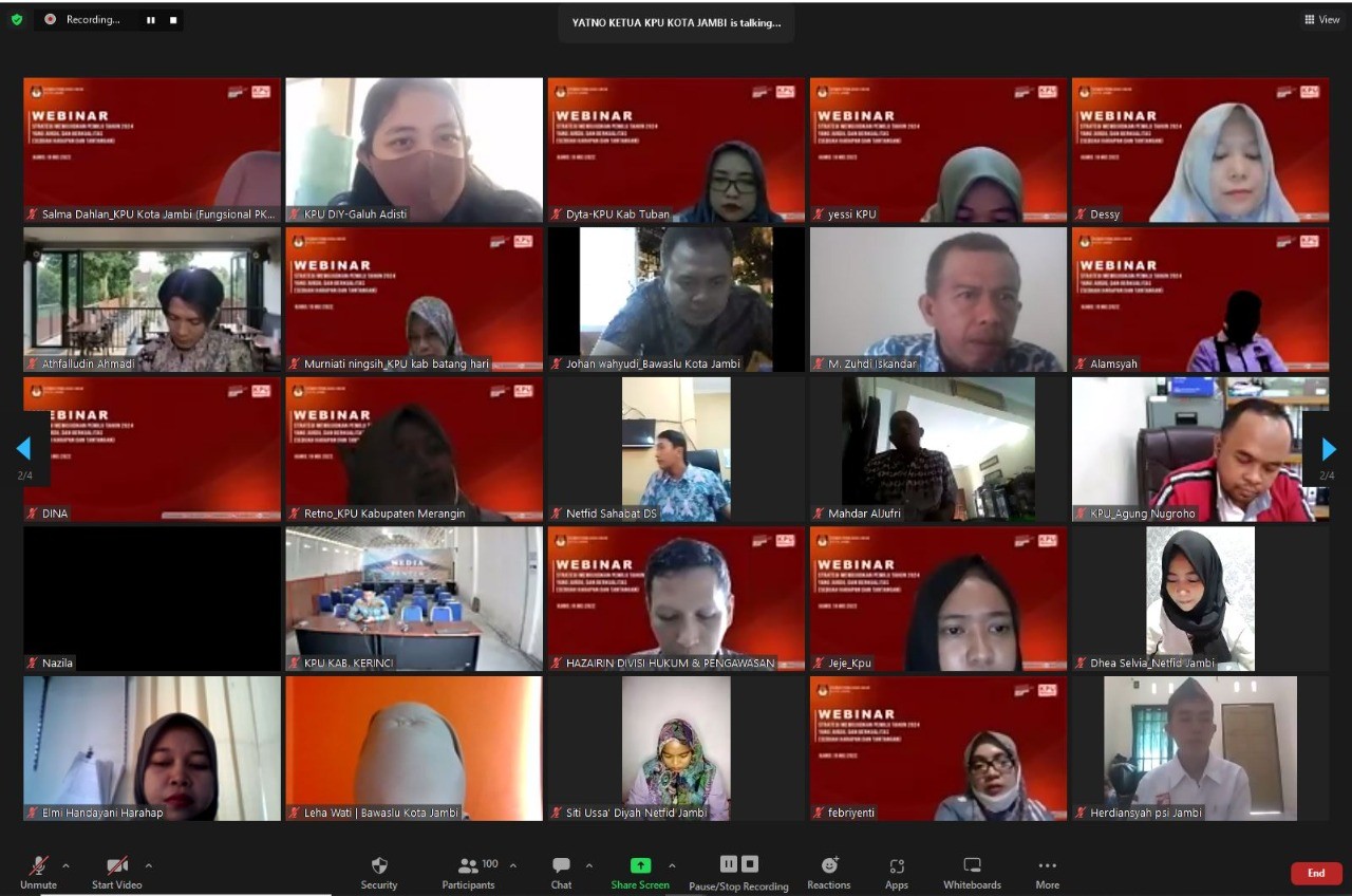KPU Kota Jambi melaksanakan Webinar dalam skala Nasional yang diikuri oleh seluruh responden di seluruh Indonesia,
