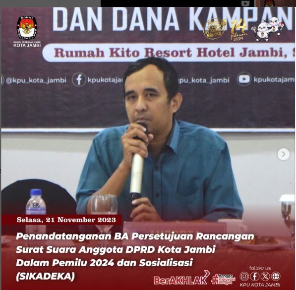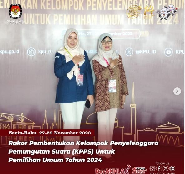 KPU Kota Jambi Divisi Perencanaan, Data dan Informasi H. Abdul Rahim, Anggota KPU Kota Jambi Divisi Teknis Penyelenggara Deni Rahmat, Operator Sidalih Qhoiru Rommy dan Operator Sirekap Muhammad Luthfi mengikuti Bimbingan Teknis Pemungutan, Penghitungan dan Rekapitulasi Hasil Penghitungan Perolehan Suara dan Penggunaan Sirekap dalam Pemilu Tahun 2024. bertempat di The Trans Luxury Hotel Bandung, Sabtu-Selasa (25-28/11/2023).