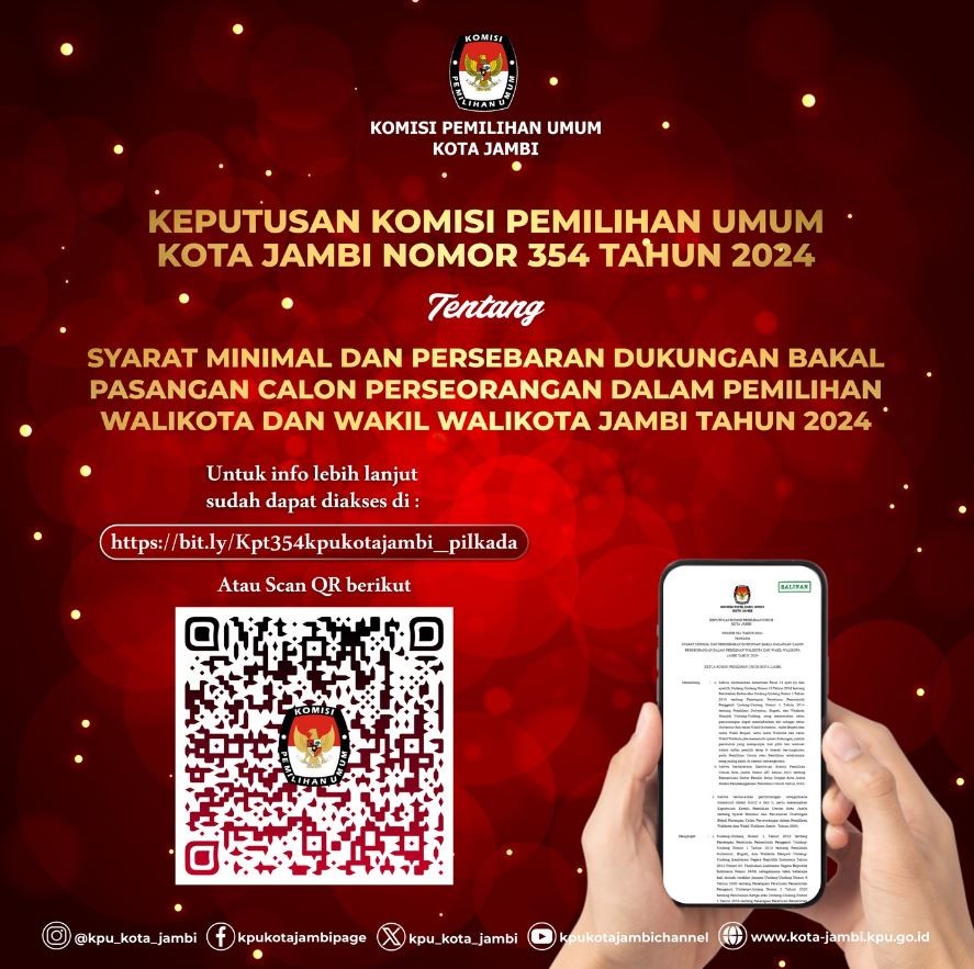Untuk info lebih lengkap terkait Visi, Misi, dan Program Pasangan Calon Walikota dan Wakil Walikota Jambi Tahun 2024 dapat mengakses link berikut ini : https://bit.ly/Visi-Misi-ProgramPaslon2024