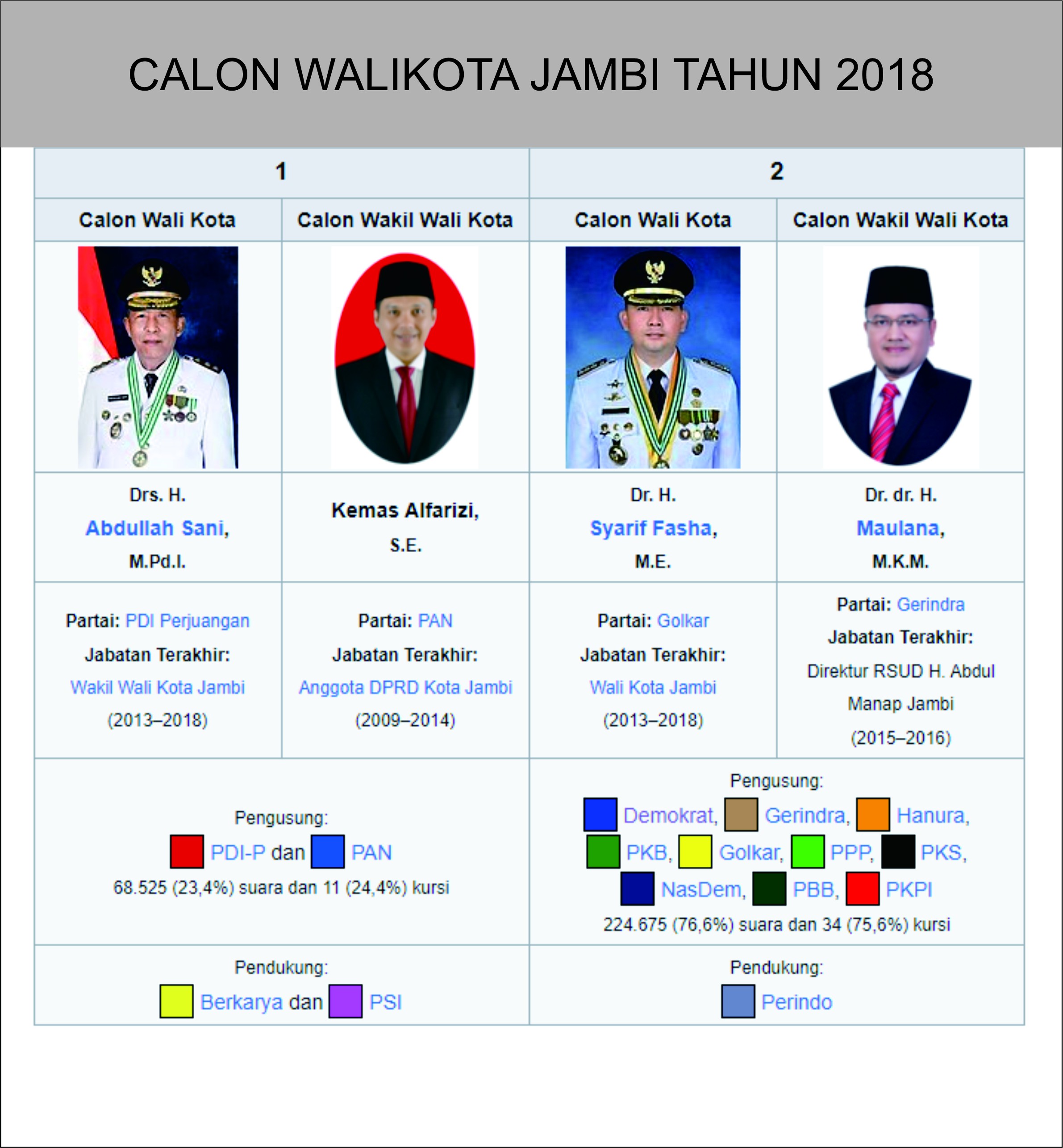 - Abdullah Sani, Wakil Wali Kota Jambi petahana 2013-2018